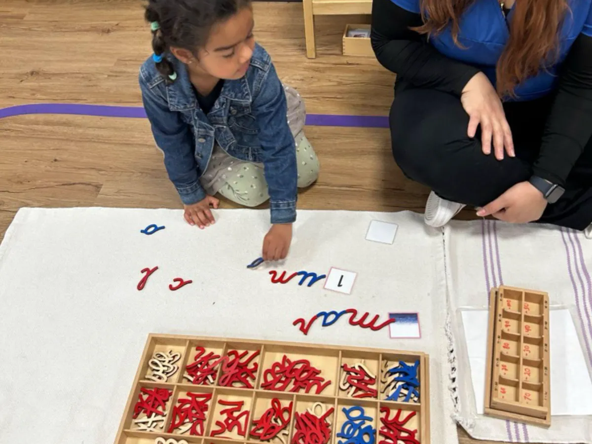 Children engage in extended work cycles—periods of uninterrupted activity that build focus, problem-solving, and persistence. Classrooms include materials for language, math, science, geography, art, and cultural studies.