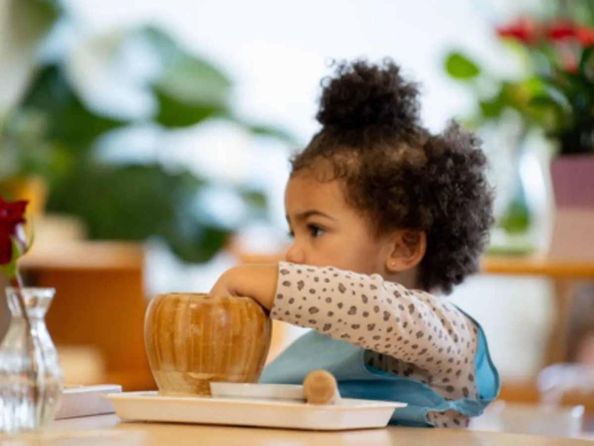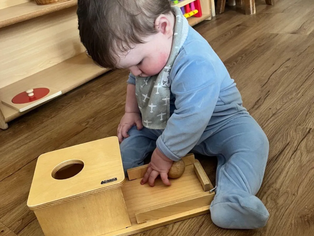 Hands-on Montessori materials refine the senses and support concentration, problem-solving, and early cognitive development.
